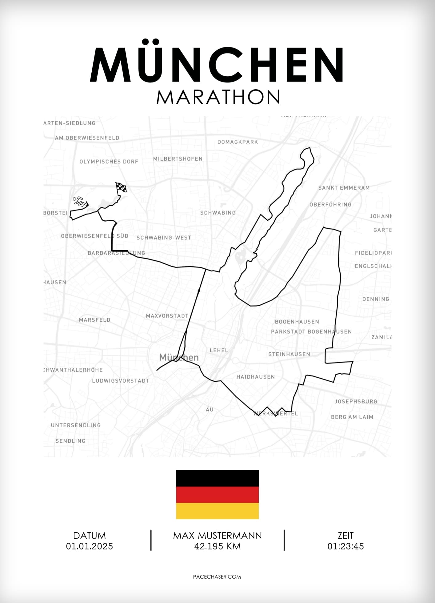 Your marathon was more than just racking up the miles—it was a personal challenge , an unforgettable moment . With Pacechaser, you can capture your achievement in style : a custom poster of the running route, personalized with your name, time, and date—immortalize your success or that of your loved ones in a high-quality design .