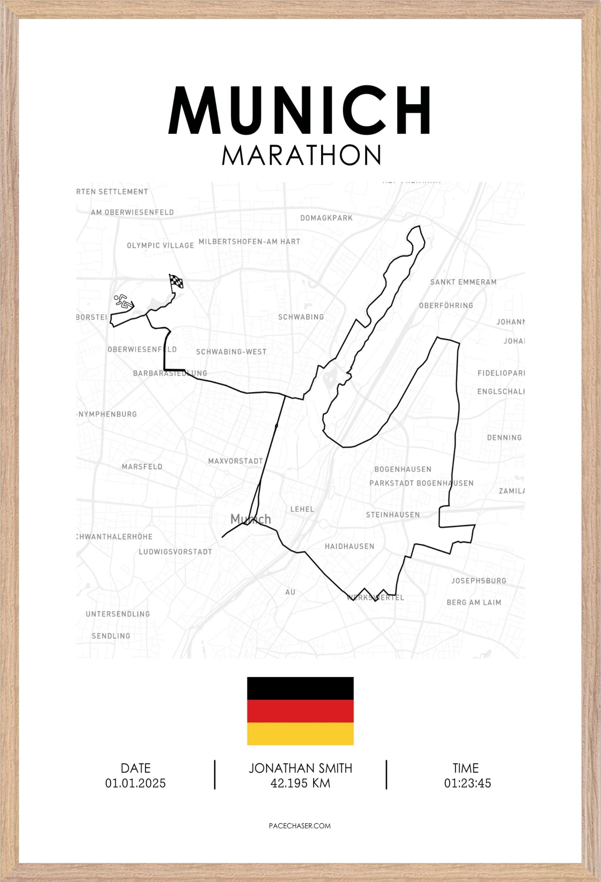 Dein Marathon war mehr als nur Kilometer sammeln – es war eine persönliche Herausforderung, ein unvergesslicher Moment. Mit Pacechaser hältst du die Leistung stilvoll fest: ein individuelles Poster der Laufstrecke, personalisiert mit Namen, Zeit und Datum - verewige deinen oder den Erfolg deiner Liebsten in hochwertigem Design.
