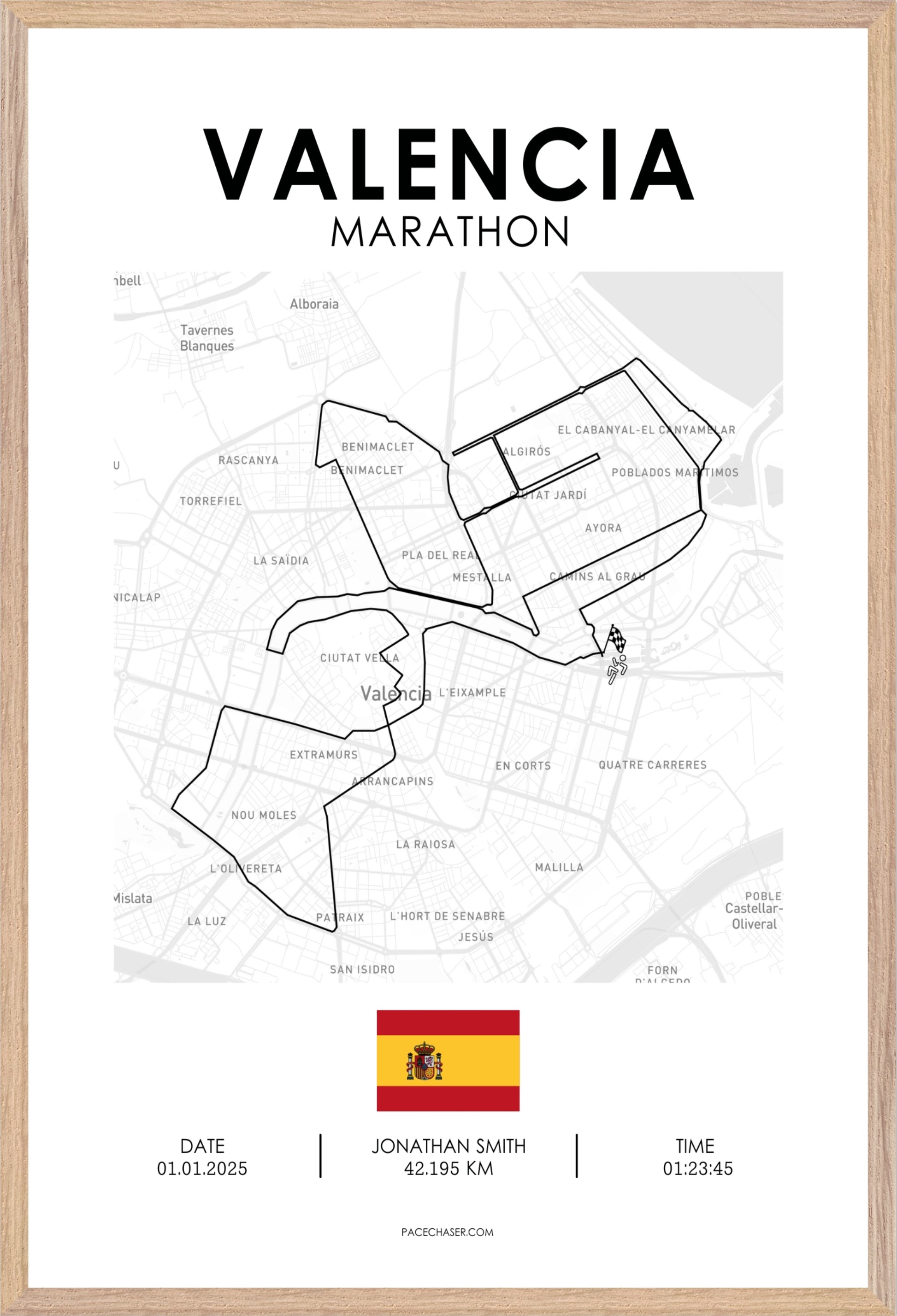 Dein Marathon war mehr als nur Kilometer sammeln – es war eine persönliche Herausforderung, ein unvergesslicher Moment. Mit Pacechaser hältst du die Leistung stilvoll fest: ein individuelles Poster der Laufstrecke, personalisiert mit Namen, Zeit und Datum - verewige deinen oder den Erfolg deiner Liebsten in hochwertigem Design.
